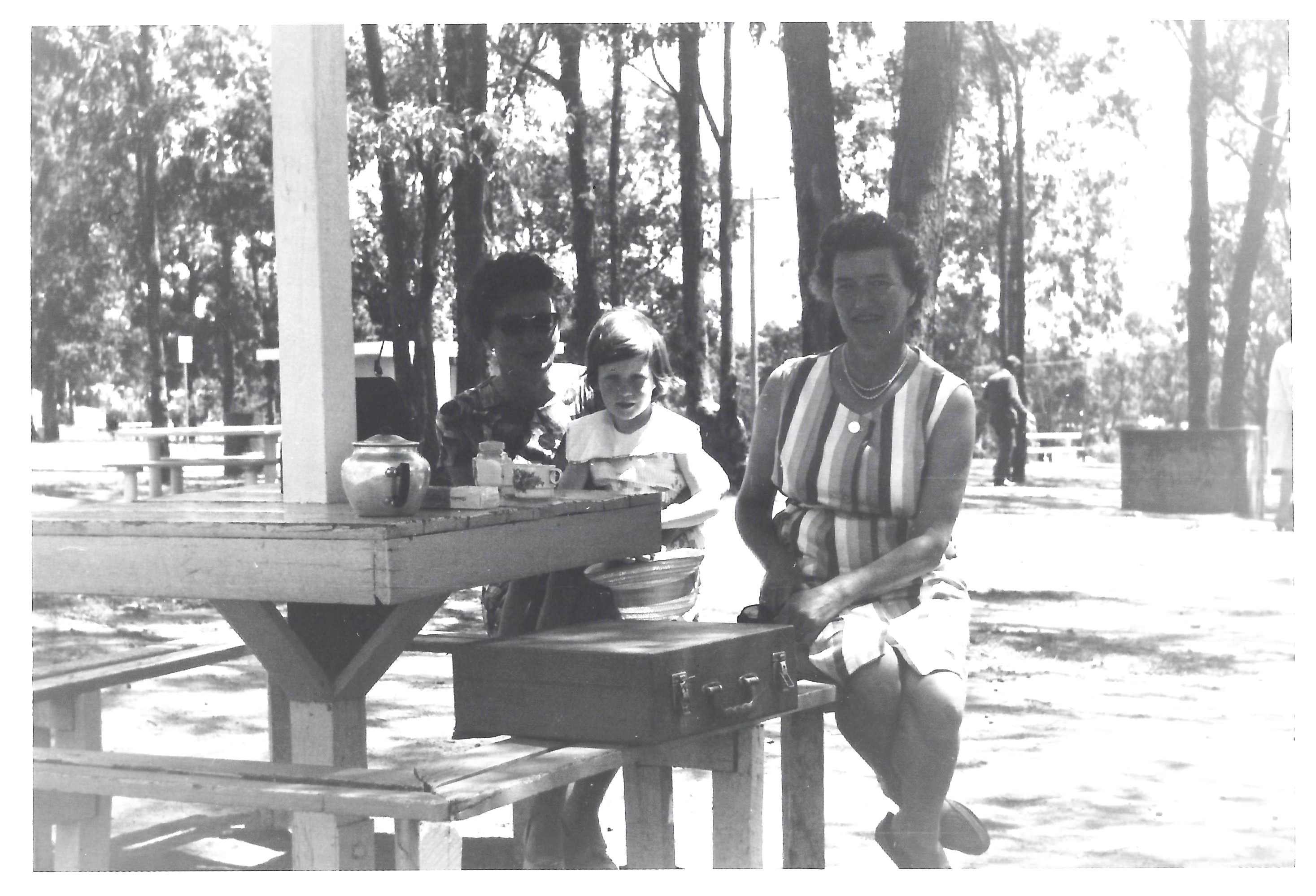 On arrival, there would be a rush to find a picnic spot in what I now know is Haviland Park, and then for us kids to play on the swings, the roundabout etc. while Aunty Doff and Mum unpacked and readied the lunch, which probably consisted of sandwiches and apparently involved a teapot and china cups – along with a pack of biscuits! I have no idea where the boiling water came from to make the tea. I have a vague memory of it being supplied at picnic grounds in years gone by, but that could be false memory syndrome.